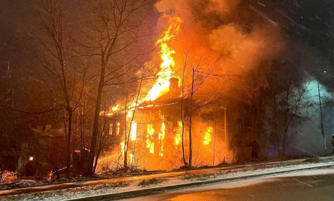Крупный пожар почти уничтожил дом в Петрозаводске