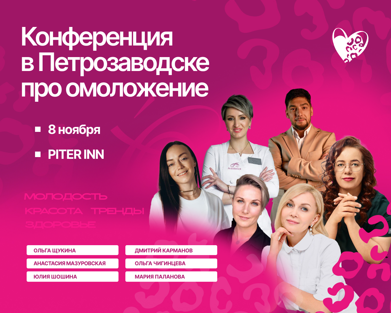 В субботу, 8 ноября, в отеле «PITER INN» откроется лекторий, где выступят 20 экспертов из Москвы, Санкт-Петербурга и Петрозаводска. Группа врачей (гинекологи, эндокринологи, диетологи-нутрициологи) посвятит свои мини-лекции женскому здоровью. Представители индустрии красоты, занимающиеся естественным омоложением (массажи лица, уходовая косметология), поделятся с участницами конференции своими знаниями и опытом. А врачи-косметологи, владельцы клиник, где приветствуют аппаратные процедуры, уколы красоты, и пластические хирурги расскажут женщинам о более радикальных приемах возращения молодости.