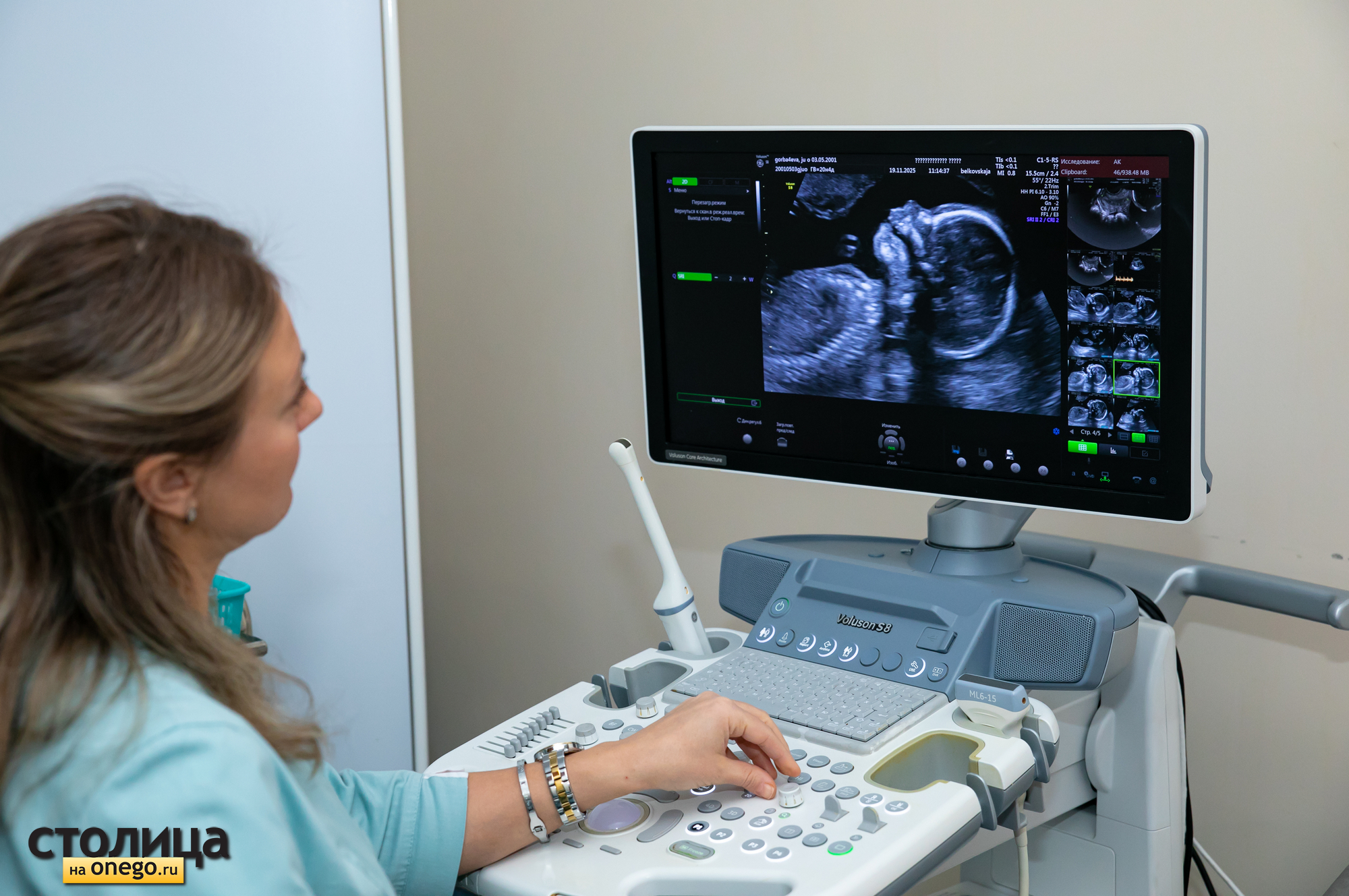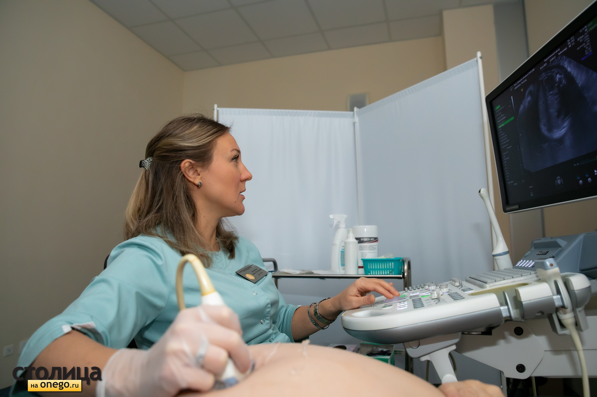 Отделение УЗИ в Карельском перинатальном центре — это 8 диагностических кабинетов. Всего сотрудники делают до 120 исследований в день, в том числе на месте у постели пациента в условиях родильного зала и реанимации. На двух из них нам разрешили поприсутствовать. Обе мамы из районов. Аппараты УЗИ экспертного класса и, главное, врачи с опытом пренатальной диагностики, сосредоточены в республиканском перинатальном центре — поэтому женщины приезжают даже из отдалённых населённых пунктов.