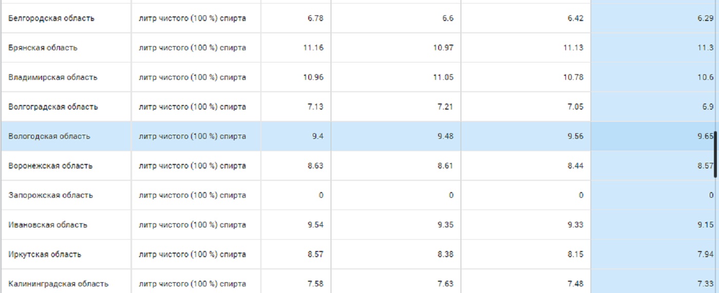 На самом деле нужно понимать, что это статистика не потребления, а продаж. Весь самопальный алкоголь сюда не попадает. Но и эти данные очень красноречиво говорят об эффекте вологодского эксперимента. Ведь если время продажи сократилось в три с половиной раза, приостановили торговлю спиртным или перепрофилировались 397 торговых точек из 610, а как продавали по 9,56 литра на человека, так и продают — о чем это говорит? О том, что приобретать меньше не стали. Просто теперь это делают перекупщики.