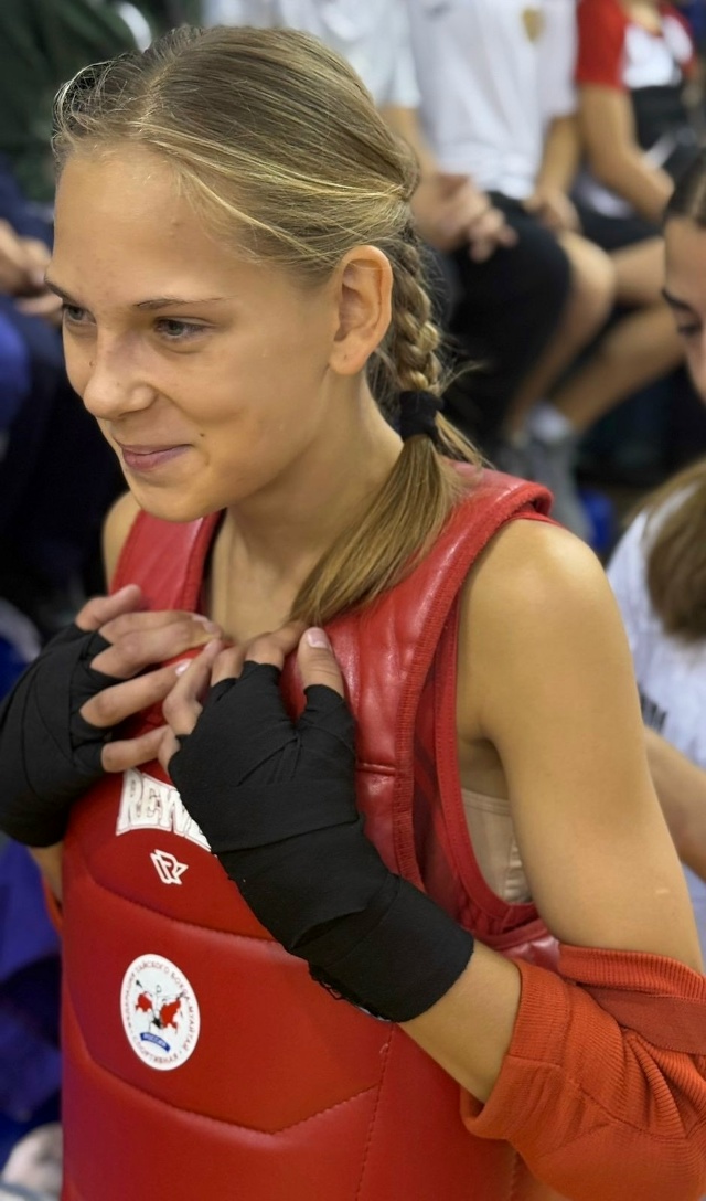 Серафима Костякова, ребенок из многодетной семьи фермеров, успешно занимающаяся тайским боксом с 2019 года. 2 года подряд она представляла Россию и Республику Карелия на первенствах мира по тайскому боксу, где поднималась на высшую ступень пьедестала, как сообщает ее мама Наталья Звукова.