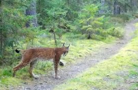 Красивая рысь позировала перед фотоловушкой в заповеднике на границе Карелии