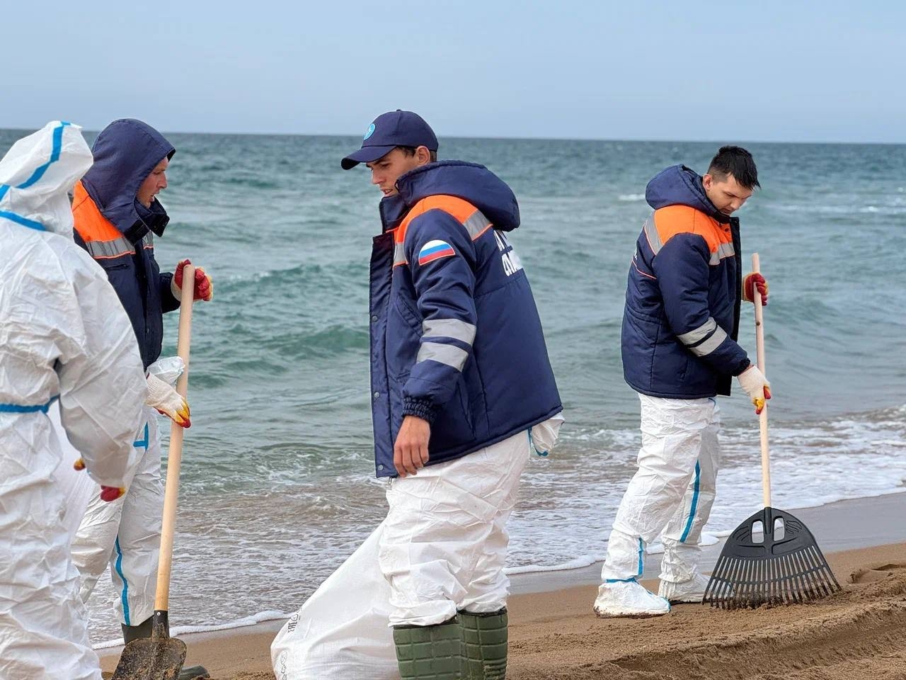 По данным Mash, черные лужи-кляксы уже заметили на Бугазской косе, в станице Благовещенская и посёлке Веселовка. В Анапу направили колонну спецтехники, спасатели возводят песчаные преграды, чтобы обезопасить пляжи от загрязнения, волонтеры вместе с местными выходят осматривать берега. По словам экологов, предварительно, в район акватории попало до 700 тонн нефтепродукта.