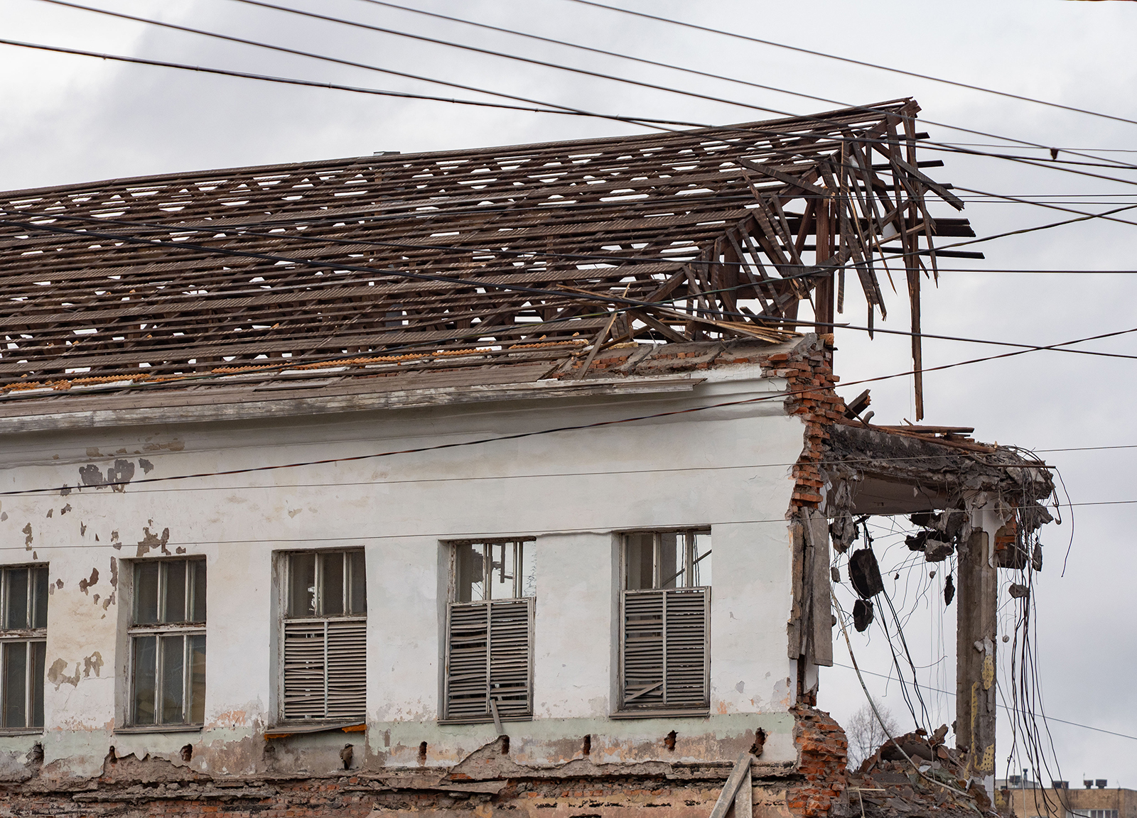 А пока можно наблюдать, как уходит целая эпоха. Как видим, здание сносят прямо со стеллажами, что добавляет атмосферности. Фотограф Игорь Подгорный понаблюдал и делится с читателями «Столицы на Онего» своим настроением.
