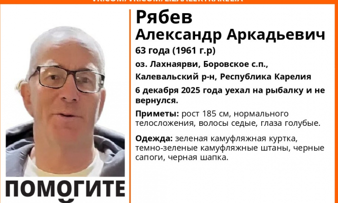 В Калевальском районе пропал 63-летний житель Боровского поселения Александр Рябев, сообщили в группе карельского отряда поисково-спасательного движения «ЛизаАлерт».