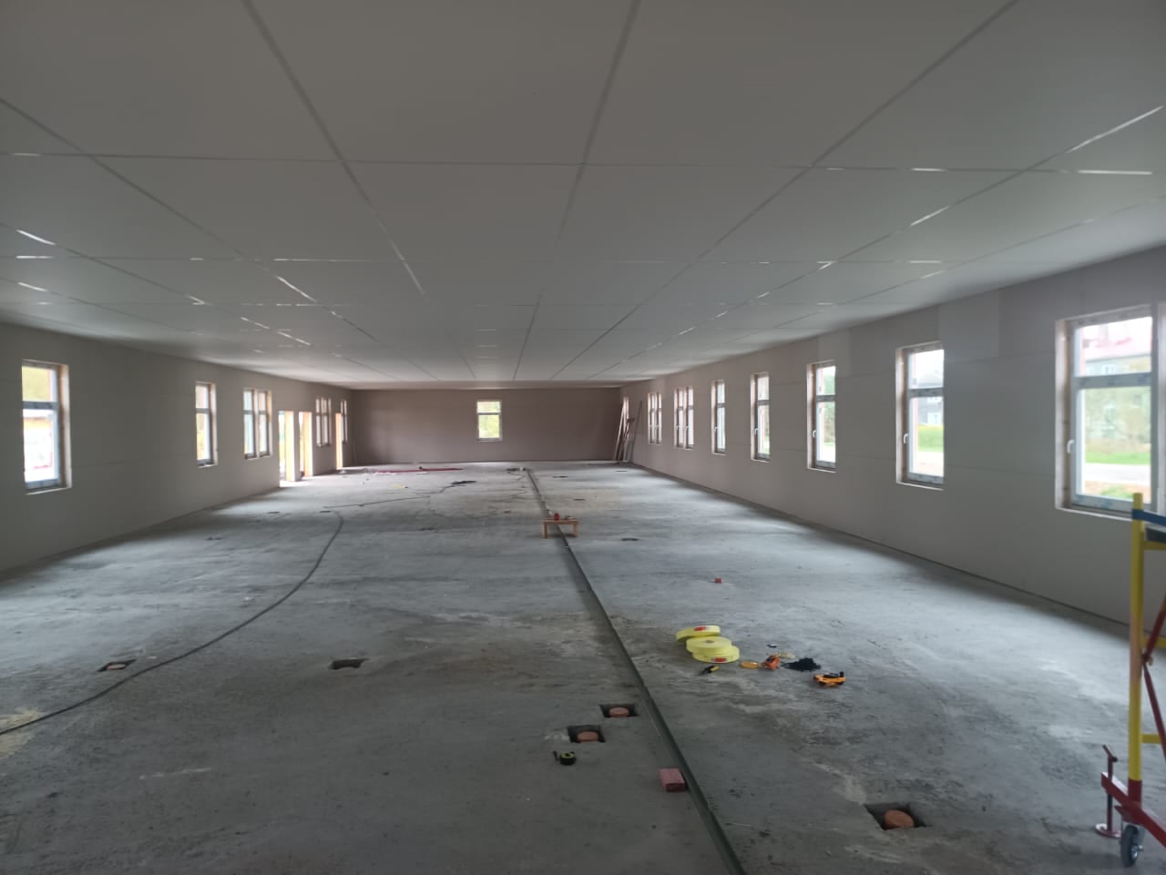 Сейчас идут работы по отделке фасада здания, внутри — чистовая отделка потолков, выполнены закладные под стены.