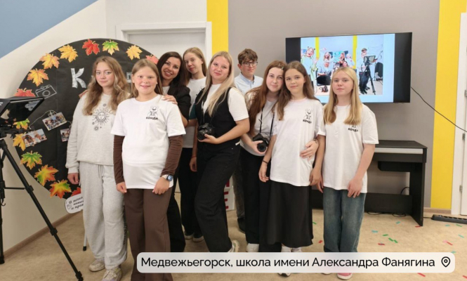 Так, в Медвежьегорской школе имени Александра Фанягина создали свой медиацентр. Ребята дали ему название «Конди» и готовятся к первым съемкам — подключают и настраивают новую аппаратуру.
