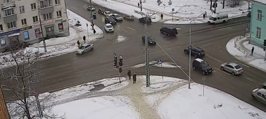 Инцидент попал на камеру наблюдения компании «Ситилинк» и был опубликован в группе «ДТП Петрозаводска и Карелии».