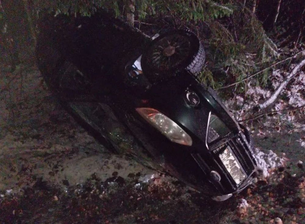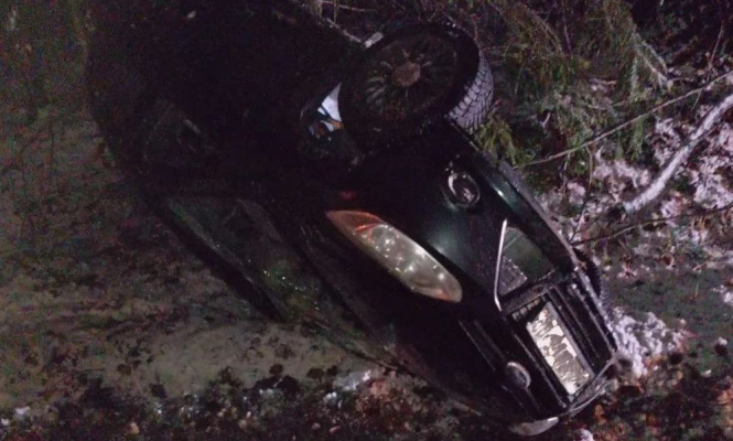 Вечером 11 декабря на 31 километре автодороги «Медвежьегорск — Оятевщина» перевернулся легковой автомобиль.