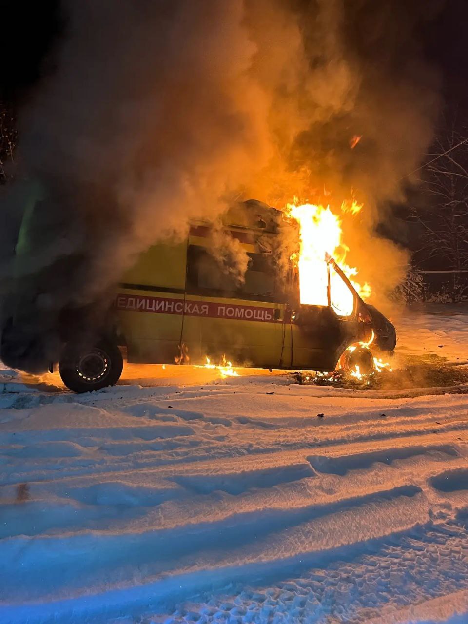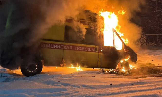 Ранним утром 2 января загорелся автомобиль скорой помощи.