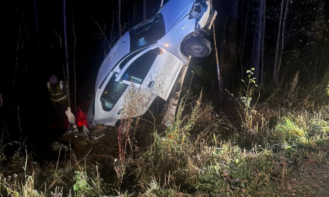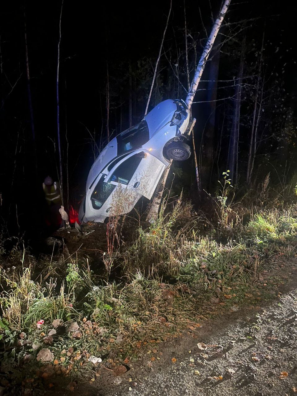 Пожарные сняли автомобиль с дерева в Прионежском районе, в ДТП пострадали трое человек.