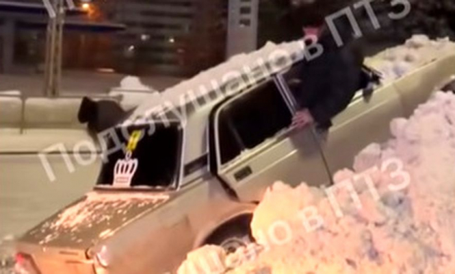 Итог гонки – столкновение с сугробом. А мог быть столб.