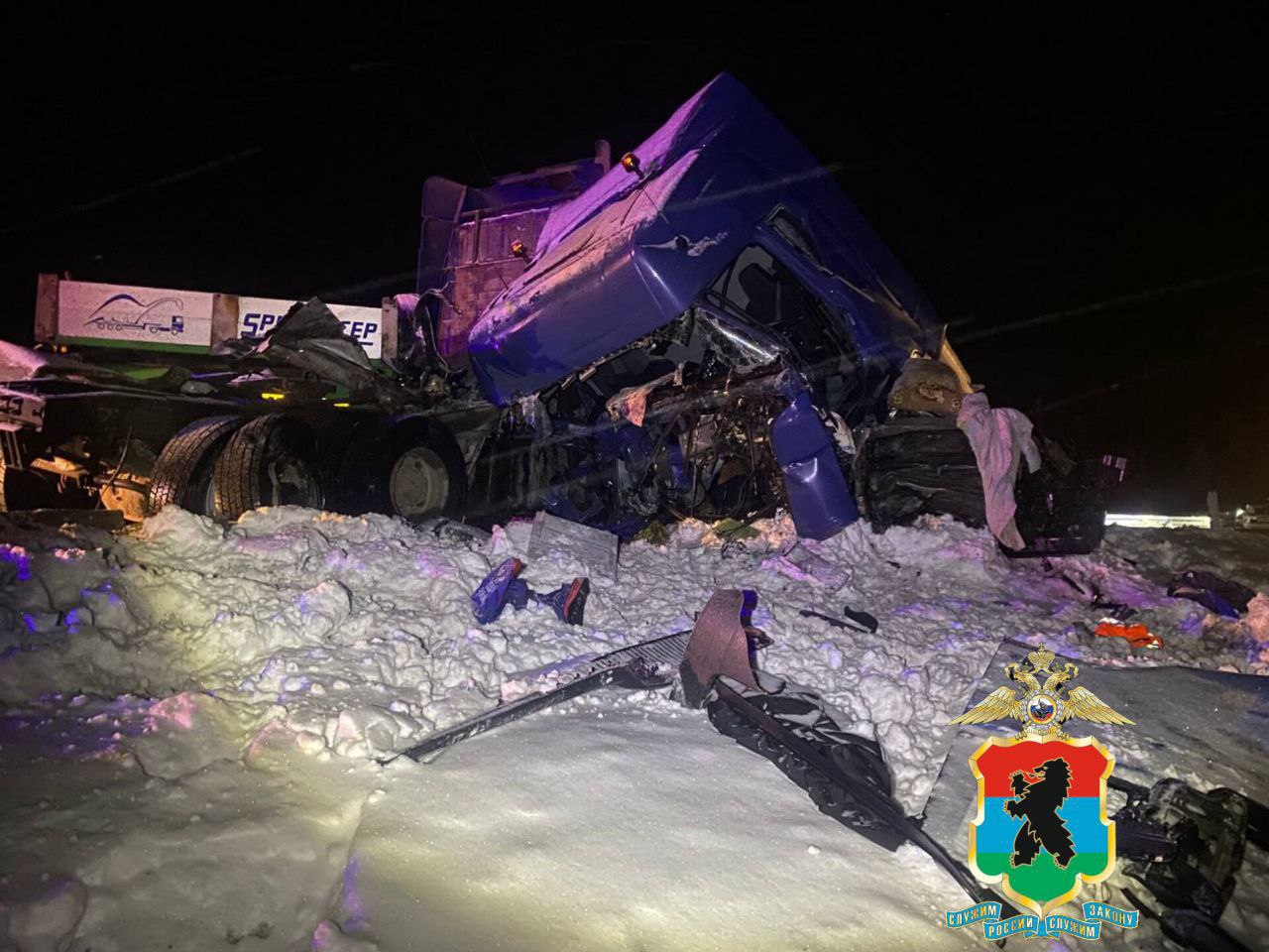 Авария произошла сегодня, 28 декабря, около 17:20. На 628-м км федеральной автодороги Р-21 «Кола» в Медвежьегорском районе произошло дорожно-транспортное происшествие с участием двух крупногабаритных автомобилей.