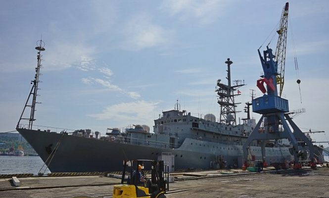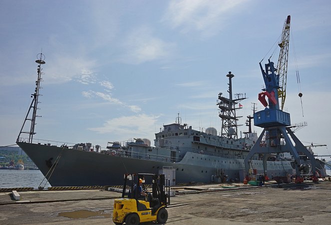 ССВ-535 «Карелия» — разведывательный корабль проекта 864 «Меридиан», построенный в Польше в 1986 году и с 1988 года входящий в состав Тихоокеанского флота. С 2014 по 2017 год он прошел модернизацию на «Дальзаводе». Всего в 1980-х было построено семь таких кораблей. Их задачи — перехват радиосвязи, изучение сонаров и сбор разведданных. Водоизмещение составляет около 3400 тонн, скорость — до 16,5 узлов, а экипаж — 150 человек плюс 70 дополнительных специалистов. Для защиты корабли оснащены арткомплексами АК-630 и ЗРК «Оса-М».