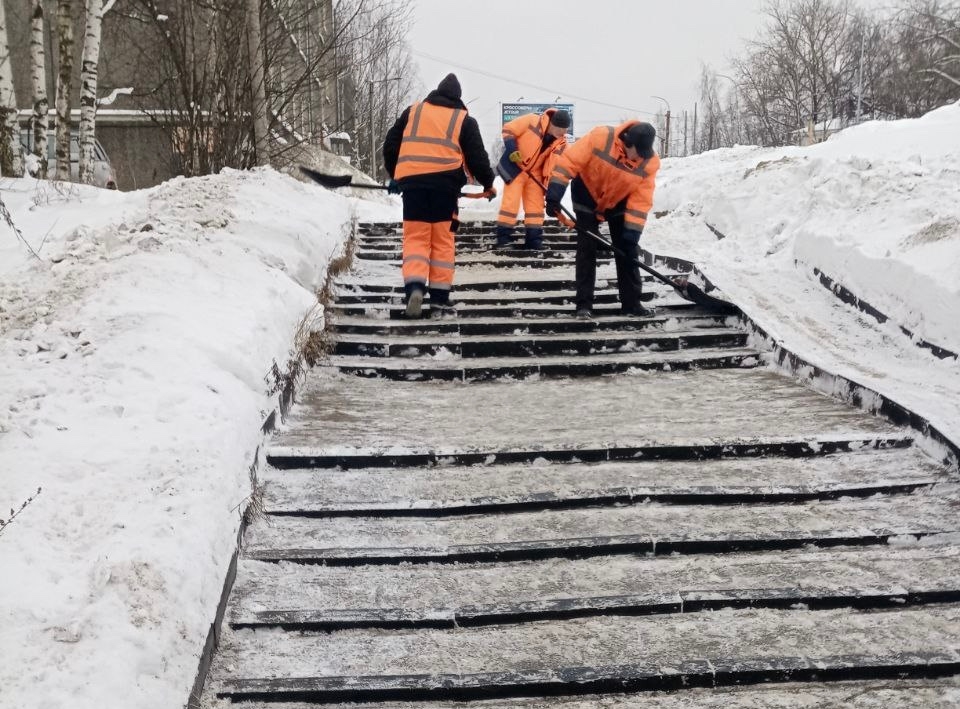 Работники Дорожного управления очищают проезжие части и тротуары во всех районах города. Муниципальные власти держат на особом контроле уборку остановок, пешеходных переходов и лестничных спусков.