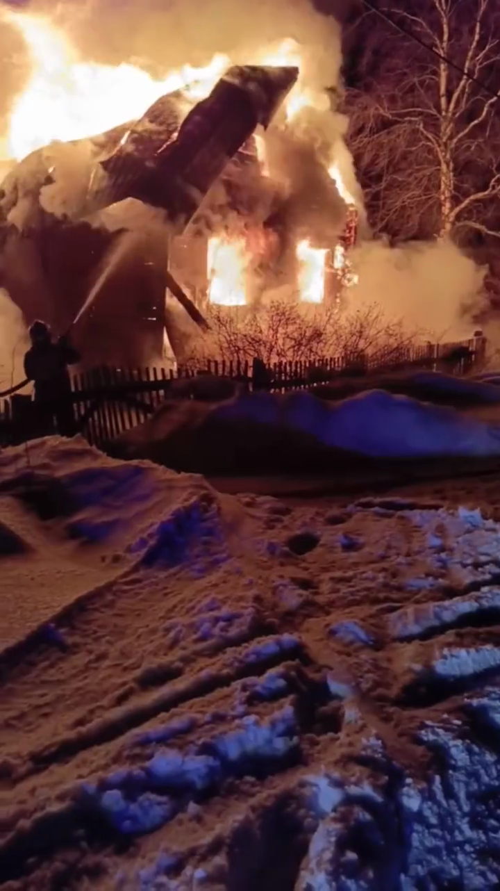 7 февраля в 23:47 поступило сообщение по системе 112 о загорании частного жилого дома по адресу: деревня Бесовец. Пожар охватил всю площадь здания размером 10×10 метров.