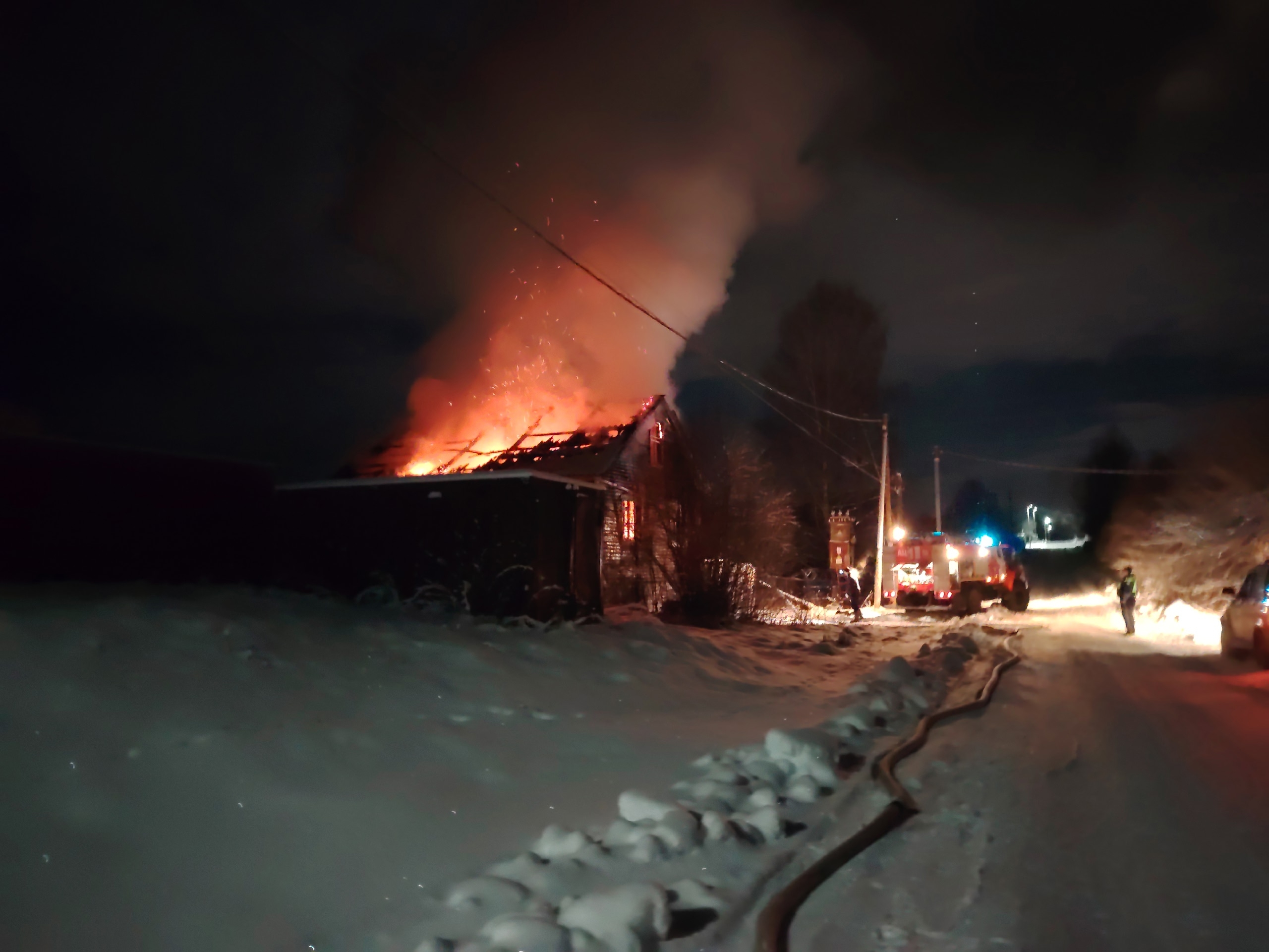 Как рассказали в местной пожарной части, сообщение о возгорании в доме на улице Приозерной поступило спасателям в 03:47.