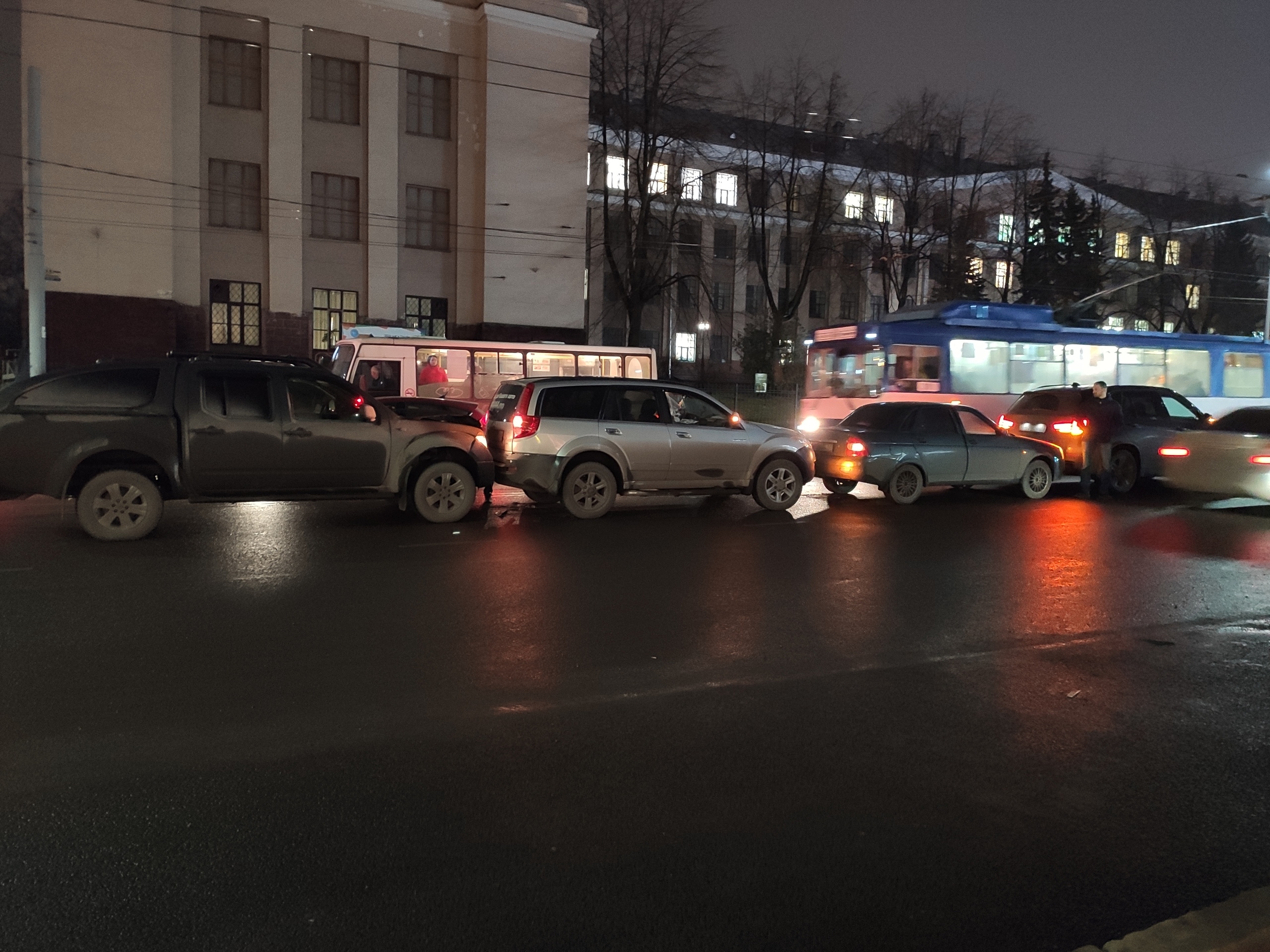 В вечерний час-пик на проспекте Ленина в Петрозаводске затруднено движение из-за ДТП с участием сразу четырех машин. Автомобили столкнулись в районе университета, выстроившись в класический "паровозик".