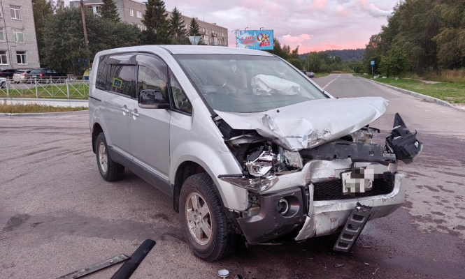 Вечером 20 августа в Питкяранте на улице Ленина жестко столкнулись два автомобиля.