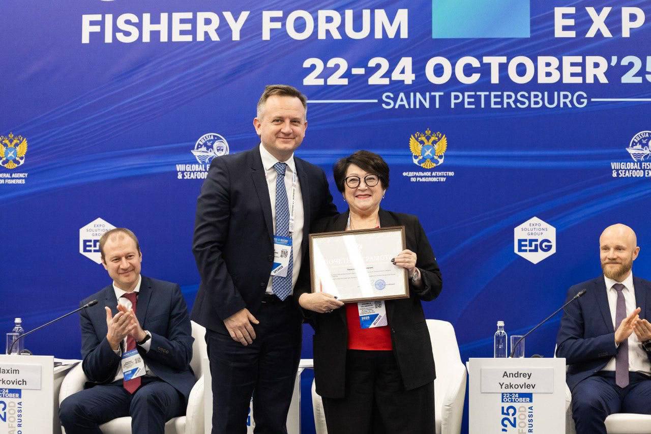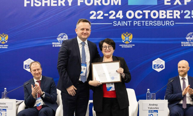 Сенатор от Приморского края Людмила Талабаева вручила на одной из площадок VIII Международного рыбопромышленного форума, который проходит в Санкт-Петербурге с 21 по 24 октября, Почетную грамоту Совета Федерации вице-спикеру карельского парламента Илье Раковскому.