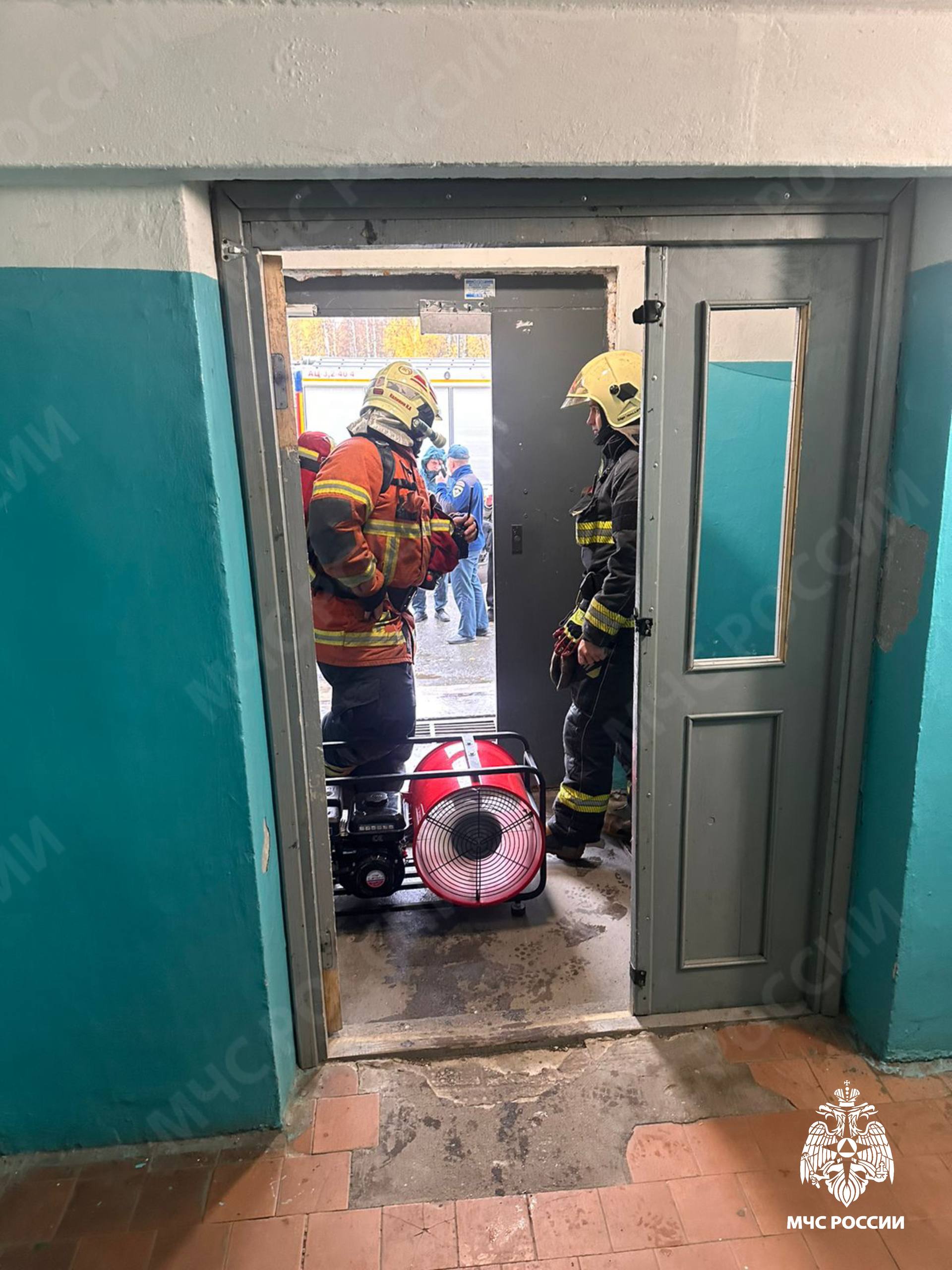 На место происшествия прибыли 12 пожарных. В подъезде было плотное задымление.