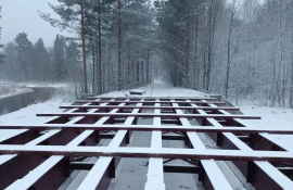 В Пудожском районе на мосту через реку Сустрежа, на дороге, ведущей к уникальному урочищу Бесов Нос, завершён монтаж пролетного строения.