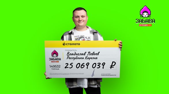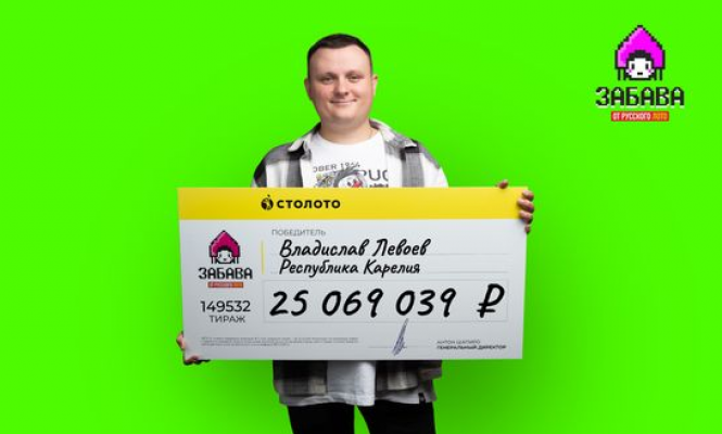 Специалист дорожно-строительного участка из Карелии Владислав Левоев выиграл 25 миллионов 69 тысяч рублей в 149532-м тираже государственной лотереи «Забава от Русского лото», сообщили в пресс-службе бренда «Столото».