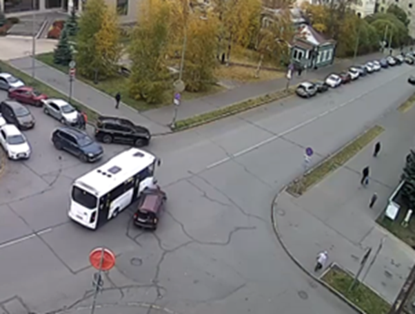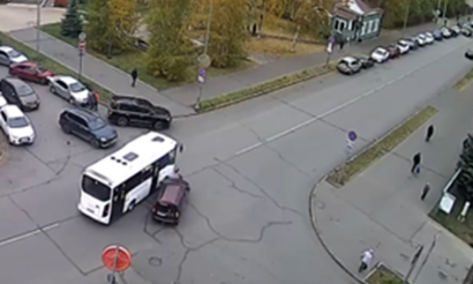 Видно, что автомобиль хотел развернуться, но его маневра не заметил водитель автобуса, который ехал по улице Кирова. Об аварии рассказали в паблике «Городской транспорт» в телеграм-канале предприятия. Именно оно обслуживает городской маршрут № 18.