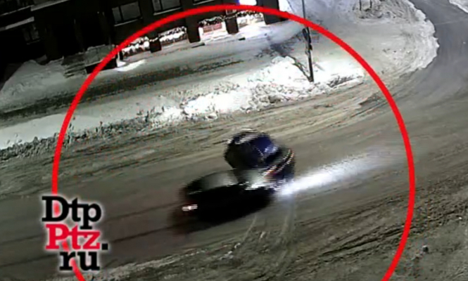 Вечером 15 января в центре Петрозаводска на пустой дороге столкнулись два легковых автомобиля.