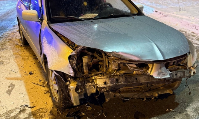 Ночью в Петрозаводске жестко столкнулись два легковых автомобиля.