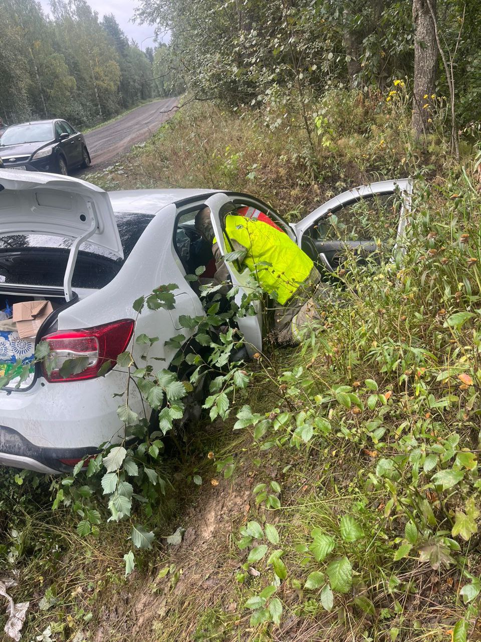 Вызов об аварии поступил в пожарную часть в 14.15. Легковой автомобиль вылетел с дороги в кювет.