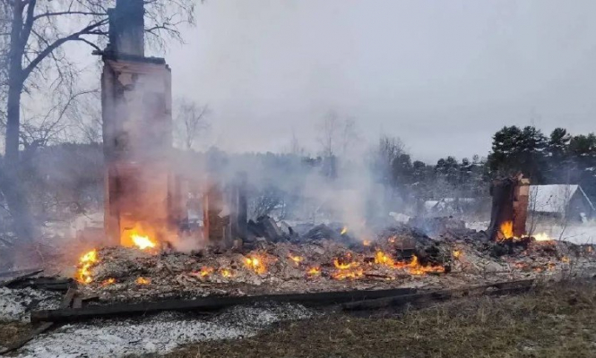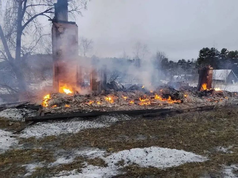 Локализовали пожар в 03:30. Дом был полностью уничтожен огнем.