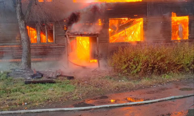 Утром в воскресенье в Суоярви вспыхнул расселенный дом.
