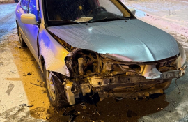 Ночью в Петрозаводске жестко столкнулись два легковых автомобиля.