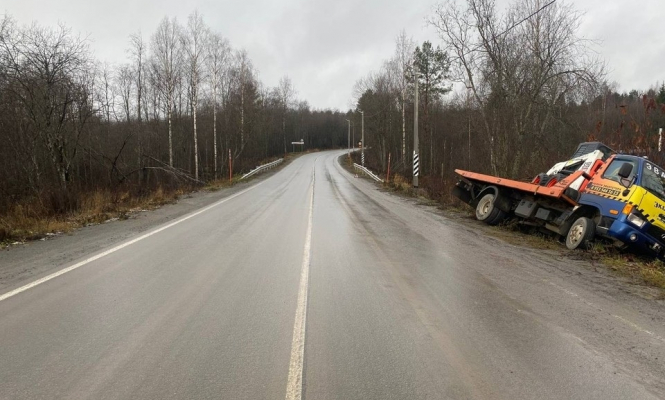 В ДТП в Прионежье пострадал водитель эвакуатора.
