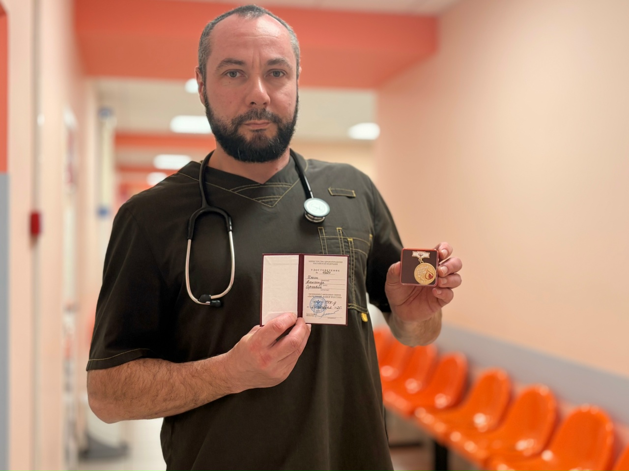 Фельдшер Александр Сергеевич Ильин награждён почётным званием «Почетный донор России». Эта государственная награда стала признанием его многолетнего и регулярного участия в донорском движении.