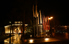 Входную зону мемориального комплекса украсила художественная подсветка.