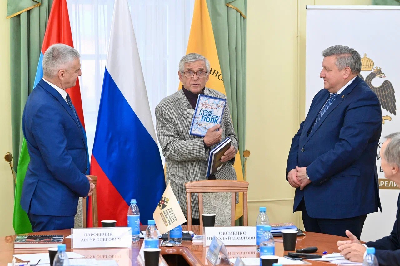 Сегодня глава Республики Карелия Артур Парфенчиков провел рабочее заседание с представителями регионального отделения Российского военно-исторического общества в Карелии и его Попечительским Советом. Встреча стала значимым событием: в Петрозаводск прибыл заместитель начальника Управления Президента по государственной политике в гуманитарной сфере, заместитель председателя РВИО Николай Павлович Овсиенко. В обсуждении приняли участие председатель карельского отделения РВИО Роман Пивненко, а также члены Попечительского совета регионального отделения.
