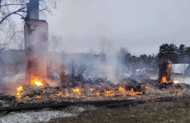 Двухэтажный дом полностью сгорел на севере Карелии