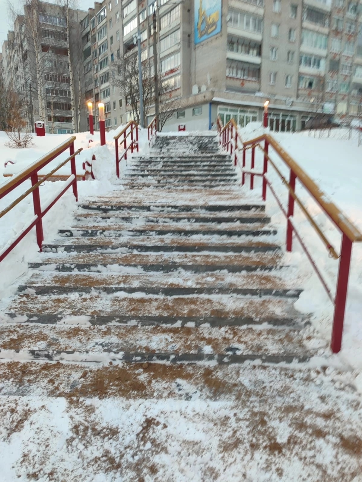 По ее словам, пешеходные переходы и дорожки, остановочные комплексы, лестницы и спуски расчищены и посыпаны песчаной смесью.