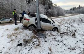 Иномарка разбилась о столб на трассе в Приладожье — есть пострадавшие