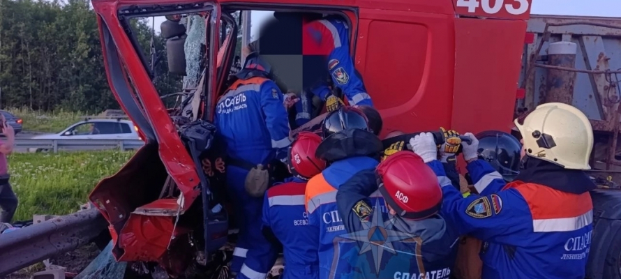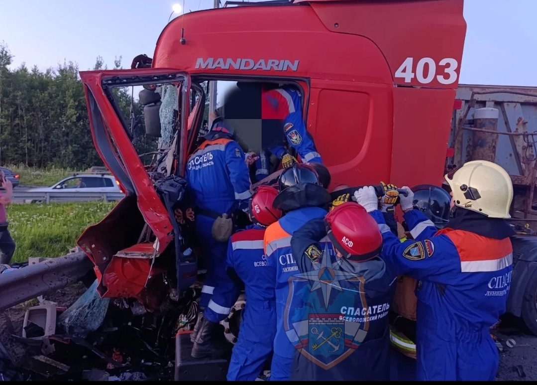 Спасатели из нескольких отрядов быстро прибыли на местом помощь потребовалась водителю и пассажиру грузовика. Их деблокировали с помощью гидравлического инструмента и передали медикам.