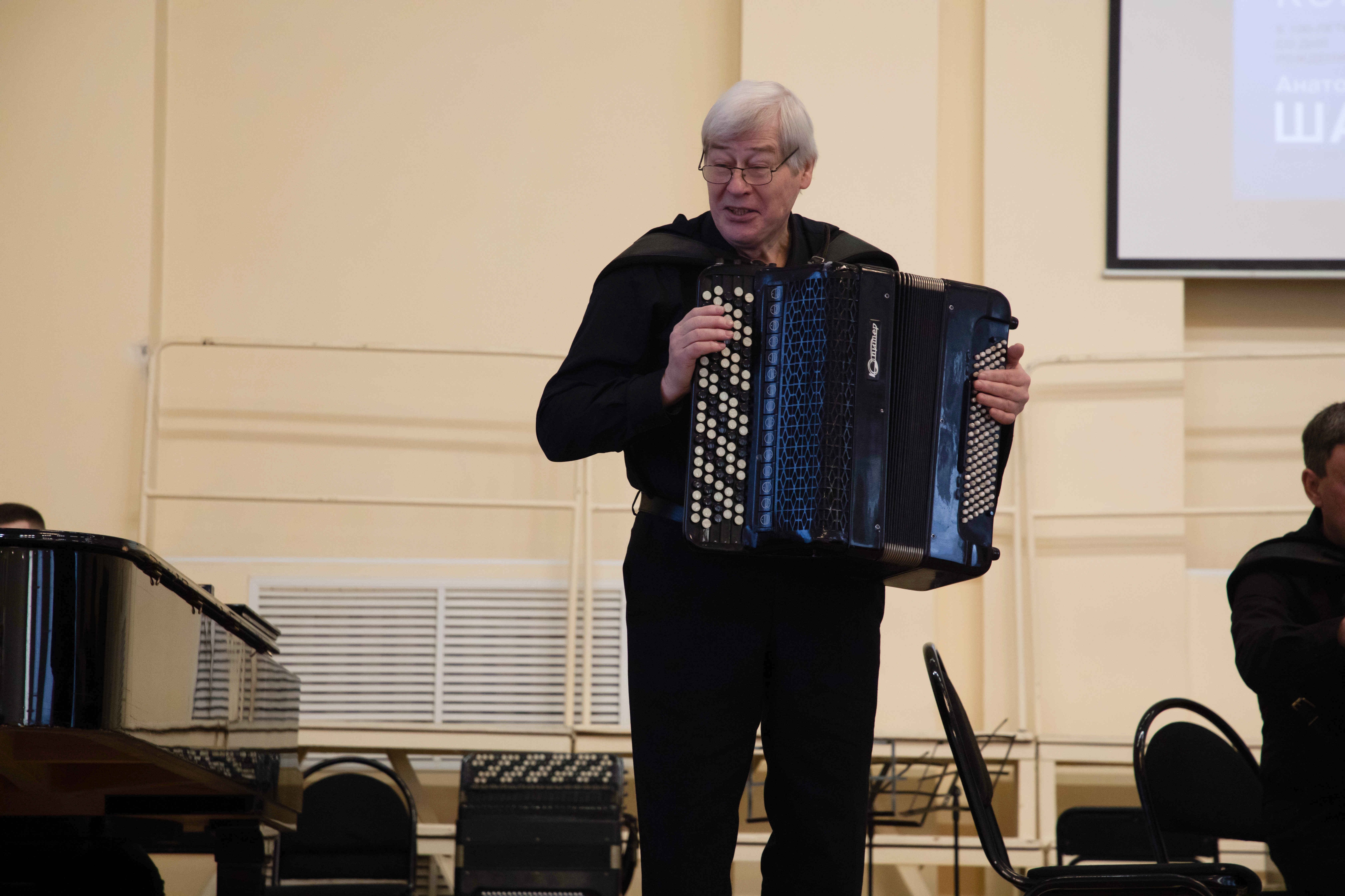 В Петрозаводский музыкальном колледже им. К. Э. Раутио состоялся концерт «Какая песня без баяна», посвященный 100-летию со дня рождения Анатолия Шалаева. Главным гостем стал Заслуженный артист России, лауреат престижных международных конкурсов в Германии и Италии, баянист Виктор Викторович Дукальтетенко, приехавший в столицу Карелии прямком из Санкт-Петербурга.