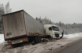Фура столкнулась с легковым авто на трассе в Олонецком районе