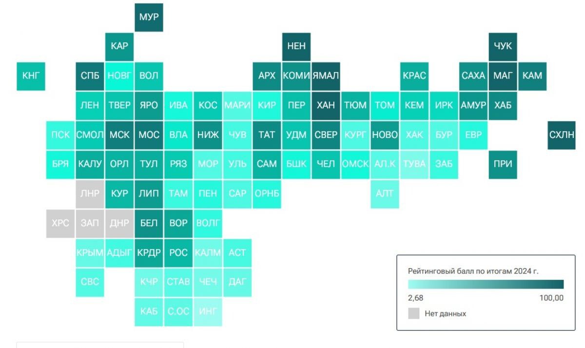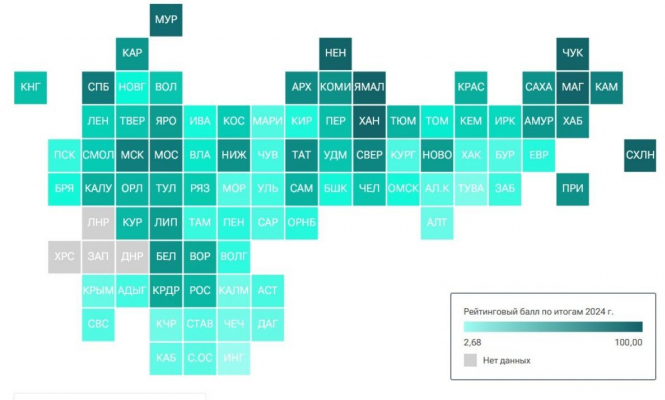 Согласно данным агентства «РИА Новости» рейтинговый балл республики вырос с 58,25 в 2023 году до 72,06 в 2024 году.
