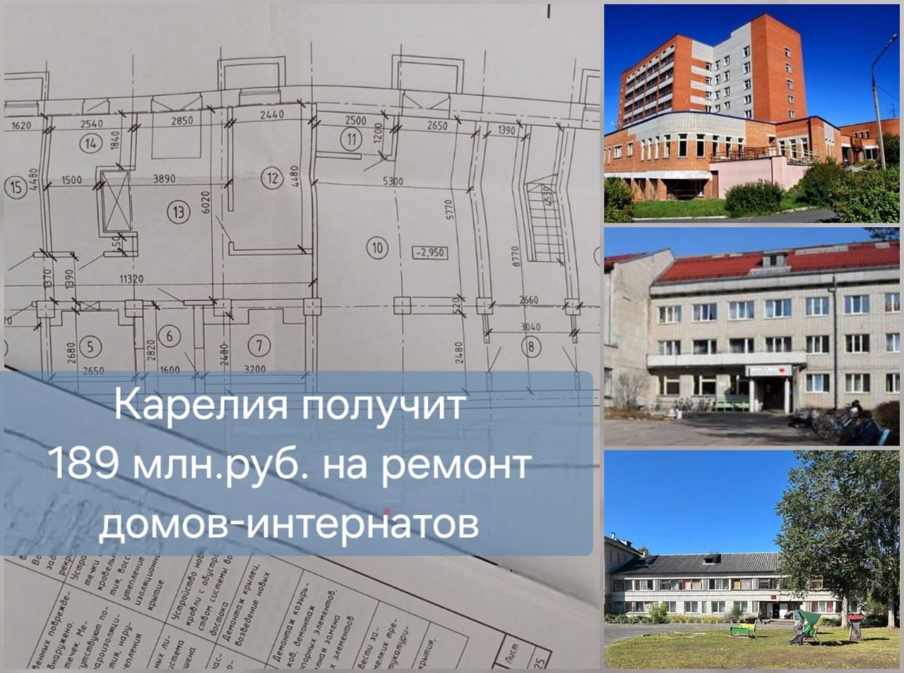 Кроме того, в июне 2025 года правительством Республики Карелия выделены средства из резервного фонда на подготовку проектной-сметной документации на капитальный ремонт здания жилого корпуса № 2 Ладвинского детского дома-интерната и капитальный ремонт жилого корпуса № 2 Медвежьегорского психоневрологического интерната. Разработка проектной документации проводится БУ РК «Дирекция по строительству». После определения стоимости капитального ремонта объектов Минсоцзащиты Республики Карелия будет направлен очередной пакет заявок в Минтруд России на предоставление субсидии из федерального бюджета.