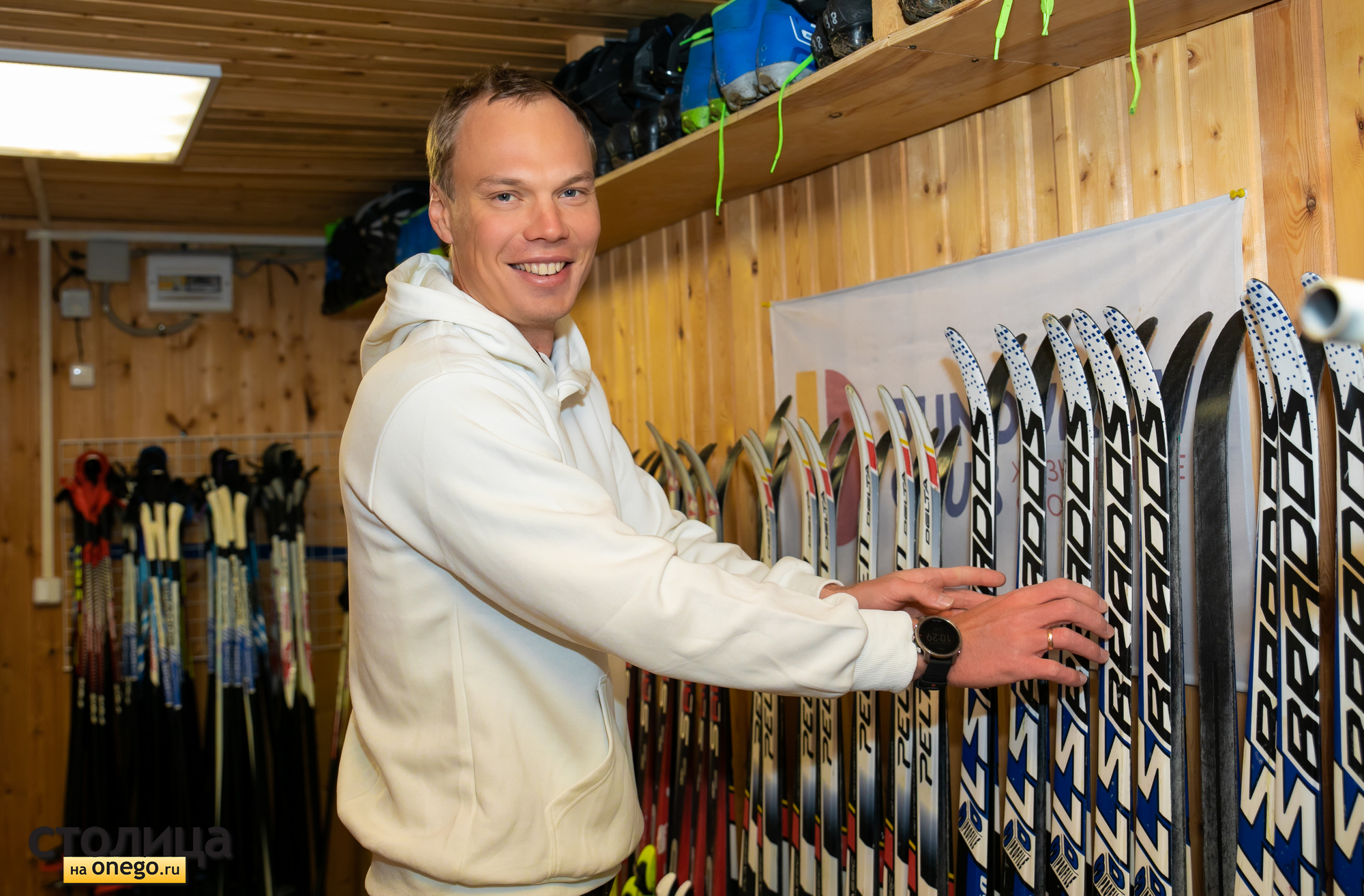 Николай встретил нас на Кургане, где у него свой лыжный клуб. Он и его команда тренируют детей с трехлетнего возраста. Примерно столько же было ему, когда он встал на лыжи.