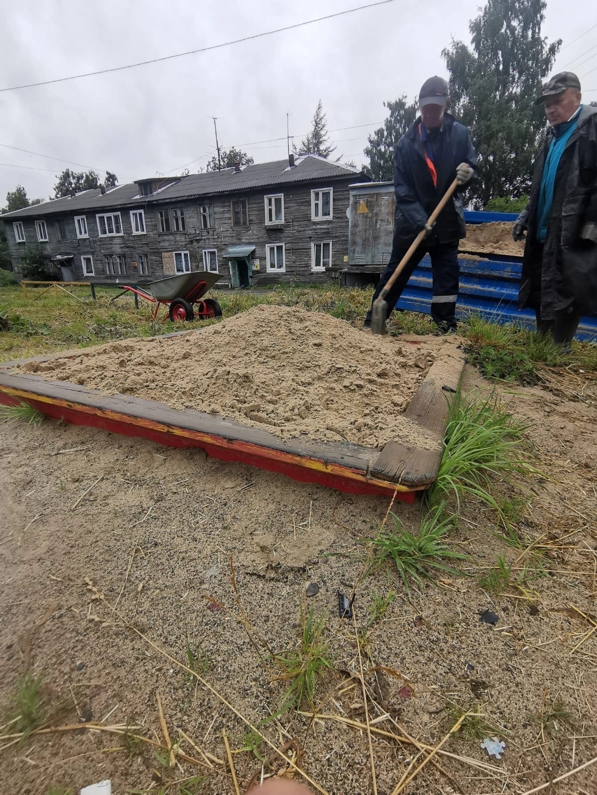 Сотрудники городского комбината благоустройства развезли песок на детские площадки Петрозаводска.