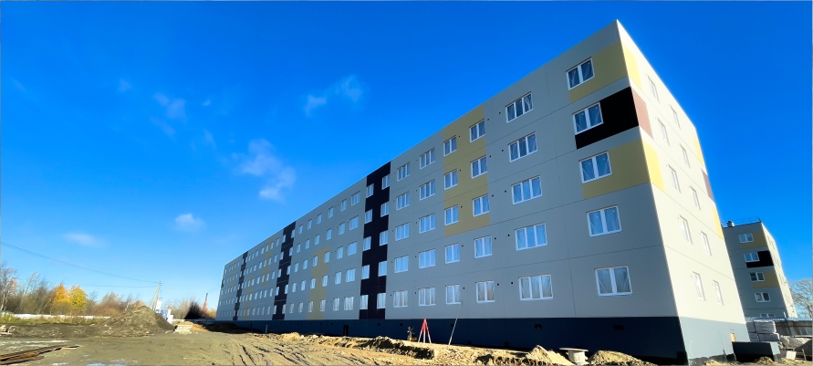 Новый дом строится в рамках программы расселения из аварийного жилья и располагается на улице Строительной в Беломорске, поблизости от 132-квартирного дома, построенного «КСМ» в 2023 году. Визуально дома будут похожи: 5 этажей, 3 подъезда, общая площадь — чуть больше 8 тыс. кв.м, аналогичное цветовое решение фасадов.