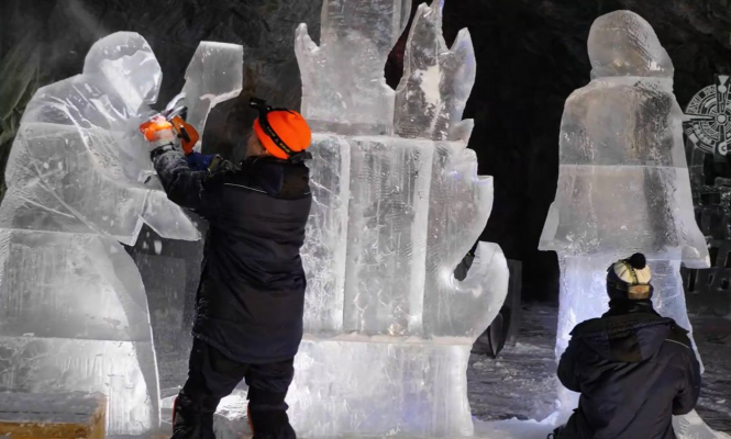 Напомним, традиция строить ледовые скульптуры в Большом колонном зале маршрута «Подземная Рускеала» появилась в 2015 году, и с тех пор практически ежегодно скульпторы создают различные тематические композиции на льду подземного озера: копии архитектурных шедевров Петербурга, героев эпоса «Калевала», представителей животного мира Карелии. В 2022 году зал подземного маршрута украшали четыре ледовые композиции в тематике «Утраченные церкви Карелии». В прошлом году фестиваль не состоялся. Для начала работ толщина льда в подземном озере должна составлять минимум 30 см, а была всего 16 см.